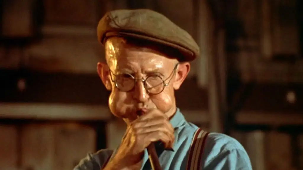 بعد اما فضای فیلم تغییر میکند و دوربین به کارخانه صنعتی منتقل میشود؛ جایی با نوار نقاله، ماشینآلات، تولید انبوه، و ریتم سرد و یکنواخت. این جابهجایی از صنعت دستی به صنعت ماشینی به شکلی تصویری و صوتی انجام میشود و تضاد میان «هنر و دست انسانی» و «سرعت و کارایی ماشینی» را به تصویر میکشد بدون آنکه حتی یک کلمه گفته شود.