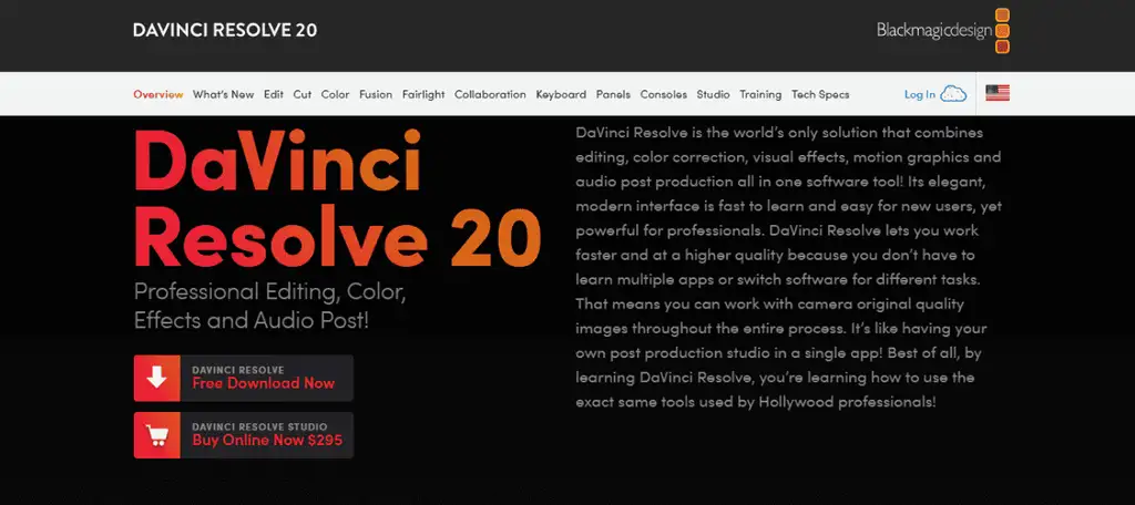این نرمافزار تدوین واقعاً را میتوان «قدرت سینمایی، بدون قیمت» توصیف کرد. داوینچیریزالو همان چیزی است که برای ویژگیهای سطح فیلم جستجو میکنید. نسخه رایگان خودش یکی از قدرتمندترین نرمافزارهای ویرایش ویدیو برای یوتیوب است و در فیلمها و سریالهای کامل استفاده میشود.